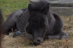 Lågställd hingst av utmärkt rastyp, i högt hull.